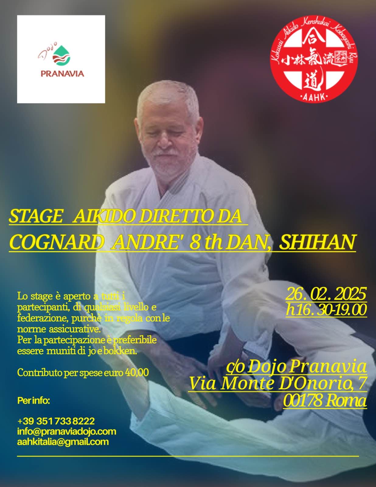 Stage Aikido 26 febbraio, Roma, Cognard Hanshi